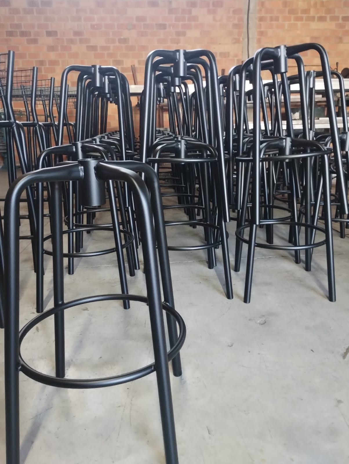 A pintura eletrostática é um processo de revestimento em pó seco, onde a tinta é aplicada por meio de carga elétrica e fixada sobre superfícies metálicas com extrema precisão. Em seguida, as peças passam por um forno de cura, que garante alta resistência e acabamento impecável.